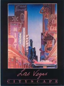 Featured is a postcard image of the "Las Vegas Cityscape". Graphic design by Jon Mac at MeikleJohn. The original Athena Art card is for sale in The unltd.com Store.